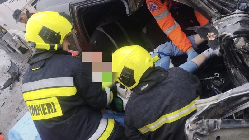 Apelul la Serviciul 112 a fost recepționat la ora 12:22. Potrivit informațiilor înregistrate, un camion de model Volvo și un automobil de model Dacia Logan s-au tamponat frontal. În urma impactului trei persoane din automobil au rămas blocate între fiarele mașinii.