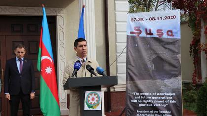 Ambasadorul Azerbaidjanului, Gudsi Osmanov a onorat „memoria șehizilor care și-au dat viața pentru integritatea teritorială și suveranitatea Republicii Azerbaidjan, oferind astfel, această victorie poporului azer”, se arată într-un comunicat al ambasadei.