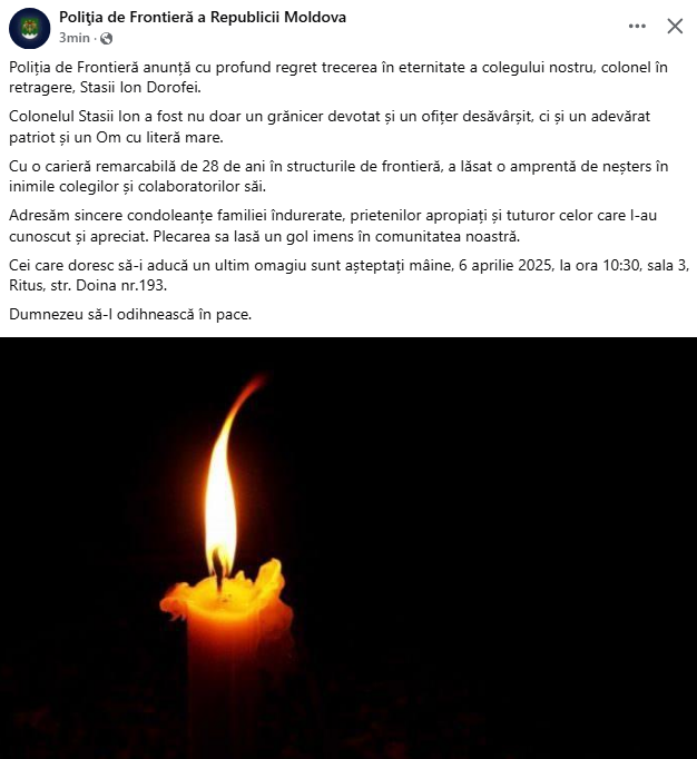 Dumnezeu să-l odihnească în pace”, se arată în mesajul scris de Poliția de Frontieră.