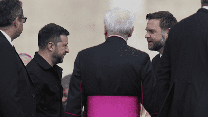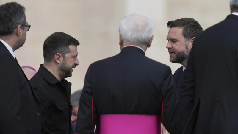 Printre oficialităţile prezente s-au numărat vicepreşedintele american J.D. Vance şi Volodimir Zelenski, președintele Ucrainei.