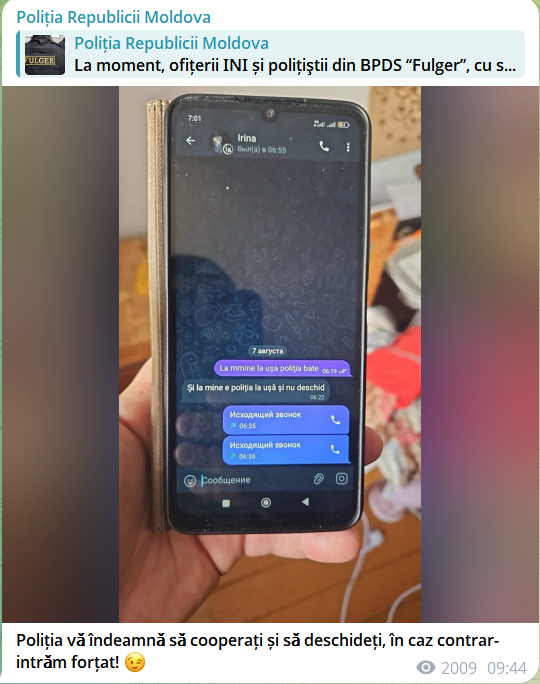 „Poliția vă îndeamnă să cooperați și să deschideți, în caz contrar-intrăm forțat!”, au transmis polițiștii.