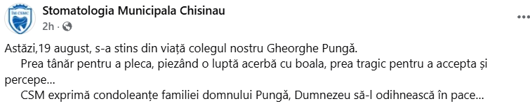CSM exprimă condoleanțe familiei domnului Pungă, Dumnezeu să-l odihnească în pace…”, a scris instituția pe rețele.