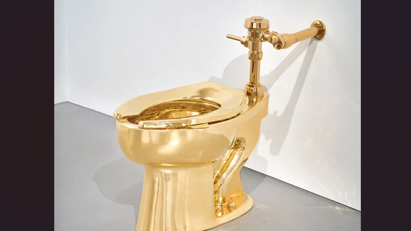 Casa de licitații o numește „un comentariu incisiv asupra coliziunii dintre producția artistică și valoarea mărfurilor”. Este, de asemenea, o toaletă complet funcțională, identică cu una care a câștigat faimă mondială atunci când a fost furată într-un jaf îndrăzneț de la Palatul Blenheim din Anglia în 2019, potrivit Mediafax.