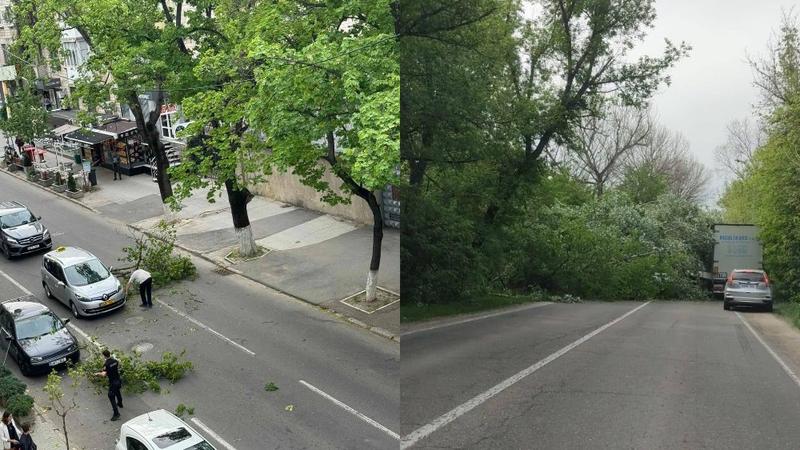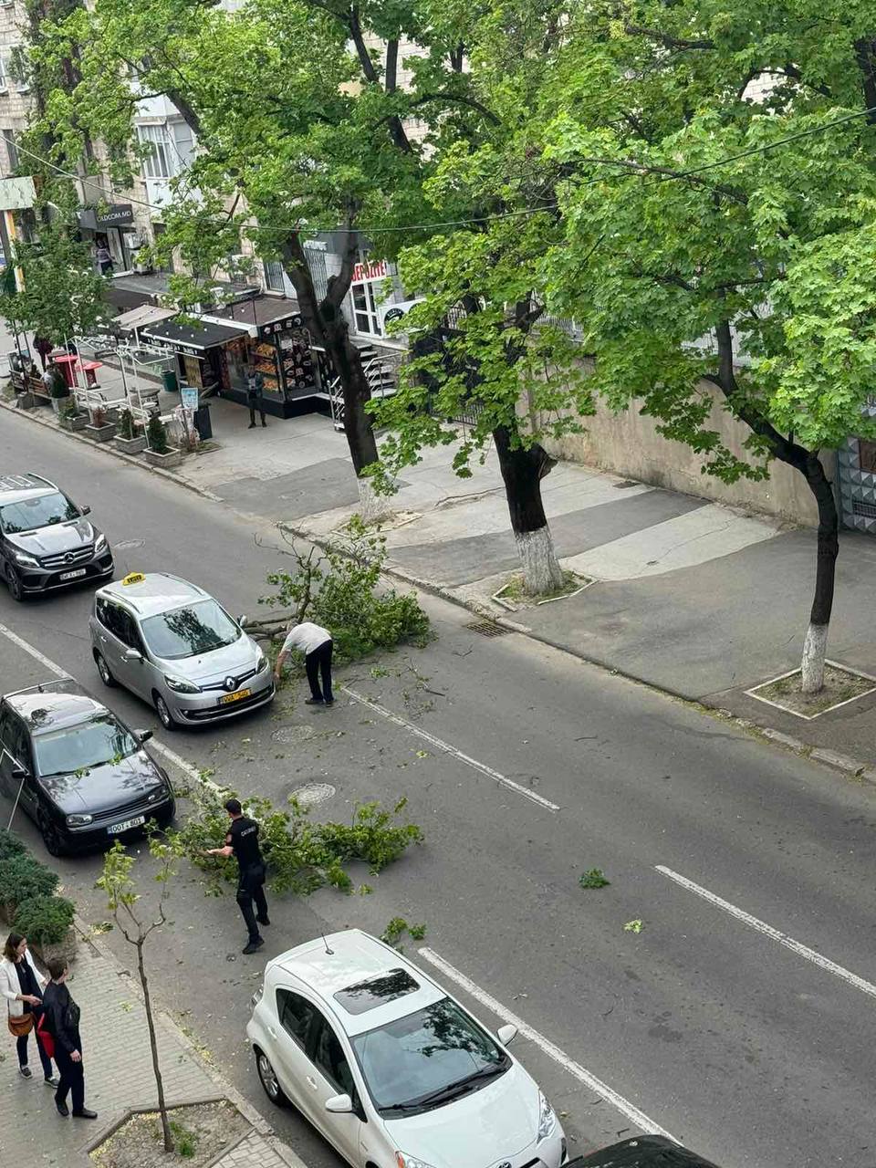 Vântul a făcut ravagii în capitală. Un copac și alte crengi au fost doborâte la pământ de rafale. Imaginile au fost publicate pe rețele de internauți.