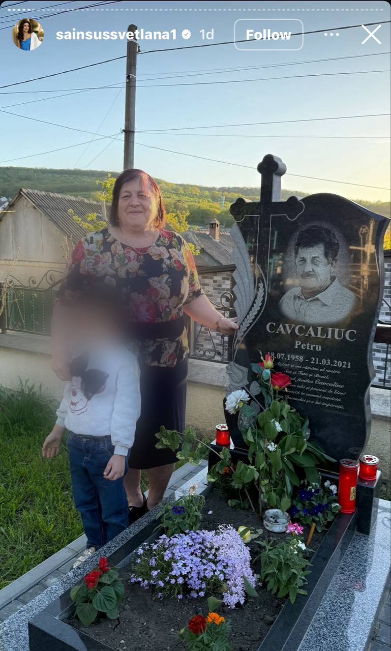 Între timp, ieri, de Paștele Blajinilor, Svetlana Sainsus, soacra acesteia și fiica ei au mers la cimitir. Din imaginile postate se observă cum Lia așează florile la mormântul lui Petru Cavcaliuc, adică tatăl liderului PACE.