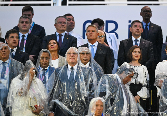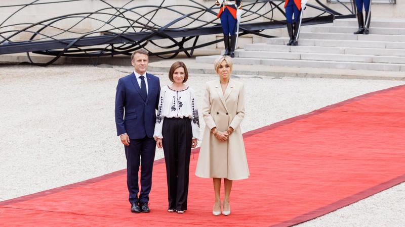 Spre deosebire de alţi oficiali, Klaus Iohannis şi Maia Sandu nu au avut pelerine de ploaie, deşi la Paris ploua torenţial.