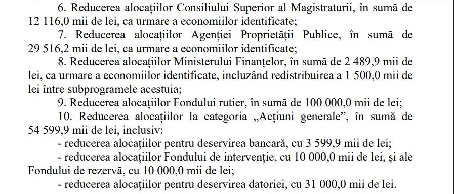- Reducerea alocațiilor Fondului rutier, în sumă de 100 000,0 mii de lei;
