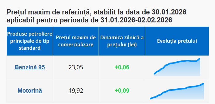 Agenția Națională pentru Reglementare în Energetică (ANRE) a stabilit noile prețuri maxime de comercializare a carburanților, valabile pentru perioada 31 ianuarie - 2 februarie 2026.
