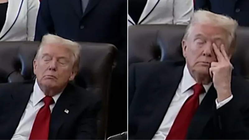 În anumite momente, Trump părea să aibă ochii închişi, iar în altele părea să se străduiască să îi ţină deschişi. La un moment dat, s-a frecat la ochi.