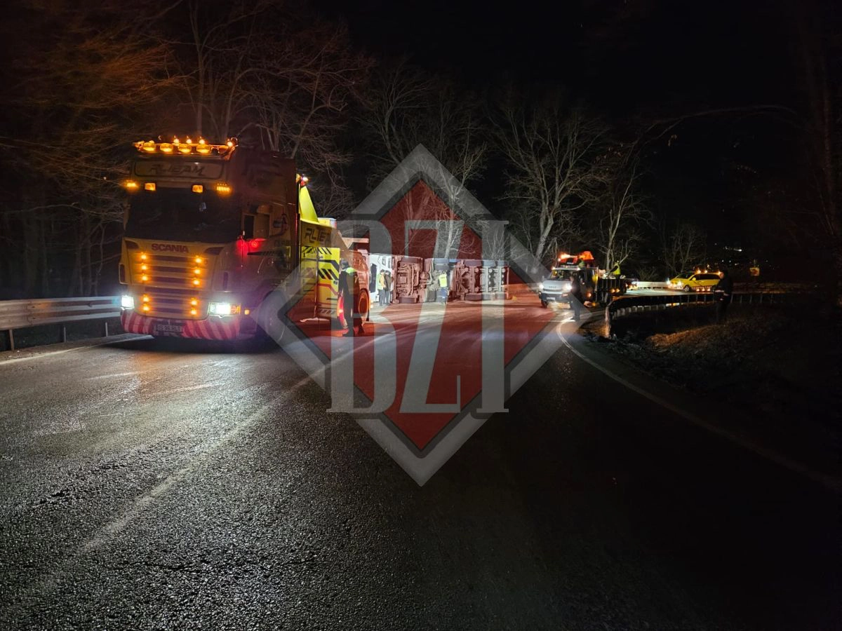 Astfel, potrivit sursei citate, un TIR înmatriculat în Republica Moldova şi încărcat cu grâu, s-a răsturnat.