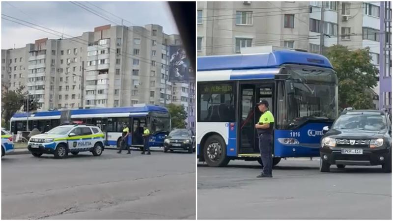 Potrivit cercetărilor preliminare, un automobil de marca Dacia, condus de un bărbat de 38 de ani, în circumstanțe ce urmează a fi stabilite, s-a ciocnit cu un troleibuz de rută.