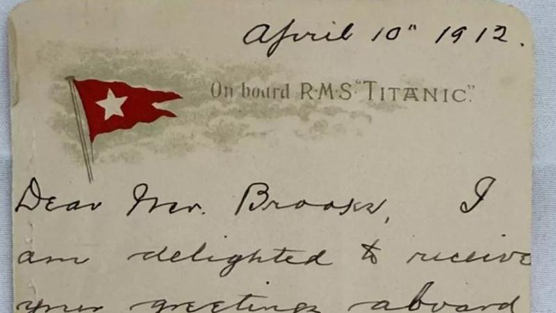 Scrisoarea era datată 10 aprilie 1912, ziua în care el s-a îmbarcat pe Titanic, la Southampton, şi cu cinci zile înainte ca nava să se scufunde, după ce a lovit un aisberg, în Atlanticul de Nord.