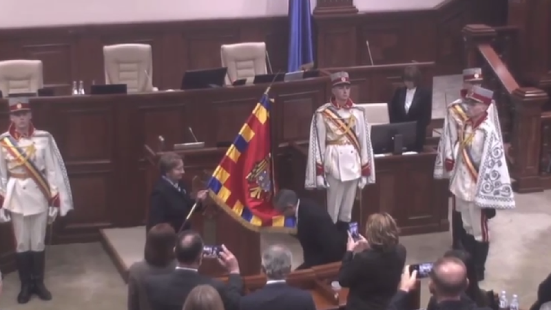 (video) Ceremonie solemnă în Legislativ: Igor Grosu a primit Stindardul Președintelui Parlamentului