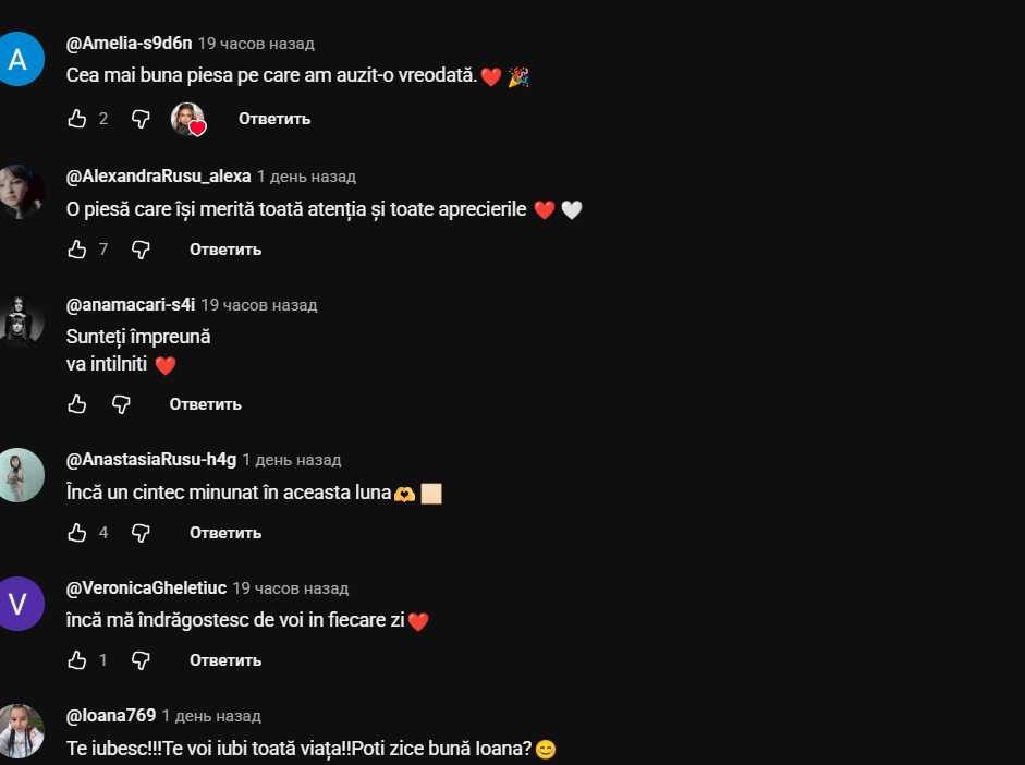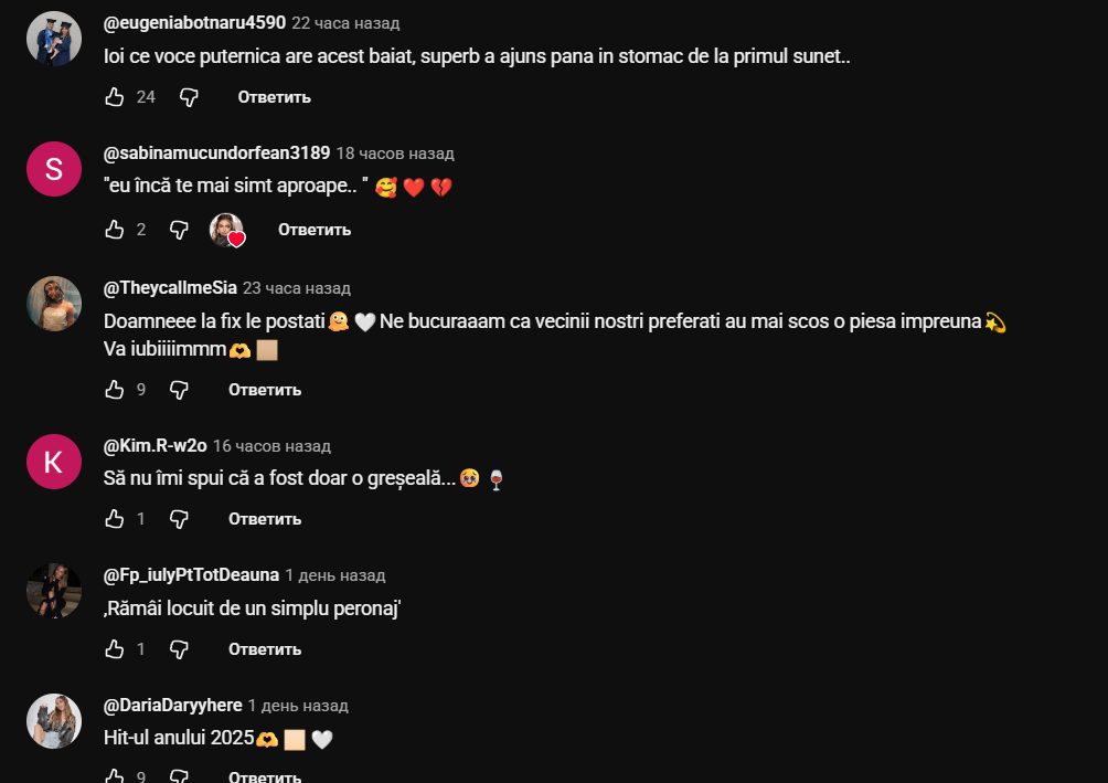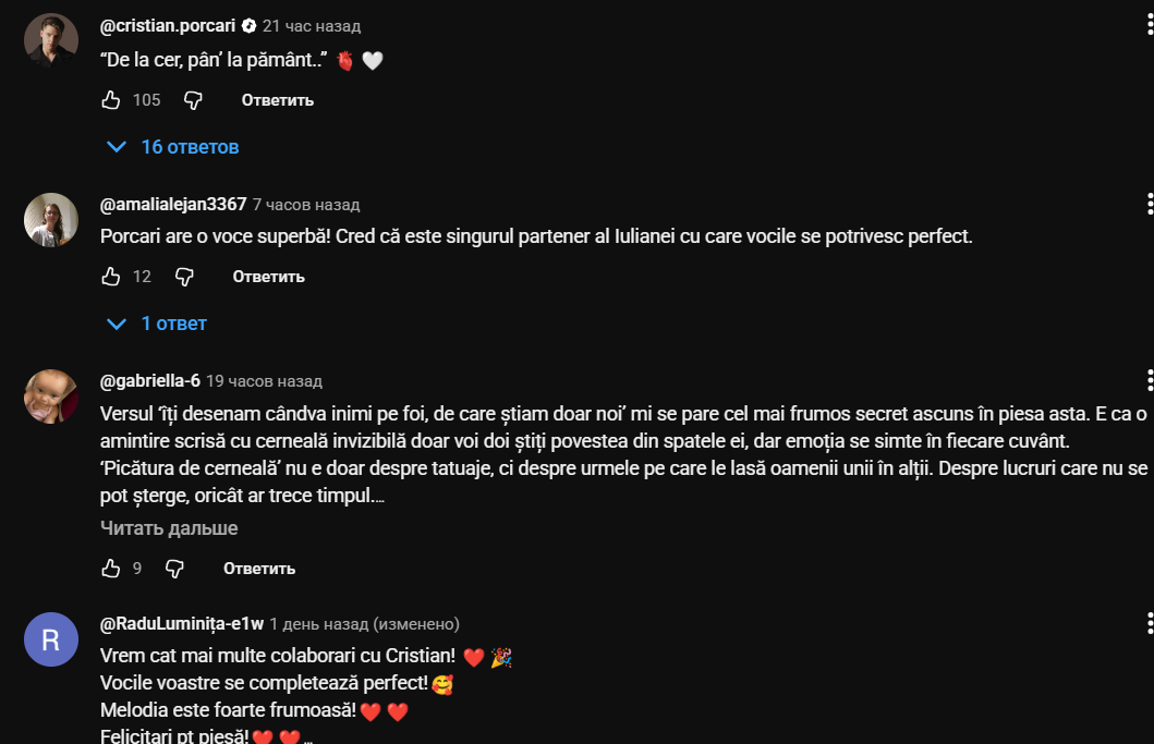 Lansat în urmă cu două zile, videoclipul a strâns deja peste 115 mii de vizualizări și sute de comentarii pline de entuziasm. Fanii au remarcat nu doar melodia sensibilă, ci și energia specială dintre Iuliana și Cristian.