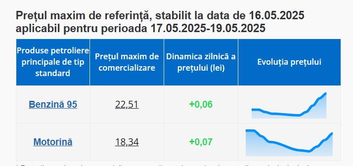 Astfel, un litru de benzină va costa mâine 22,51 lei.