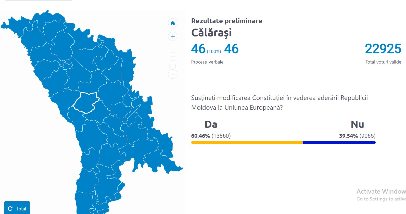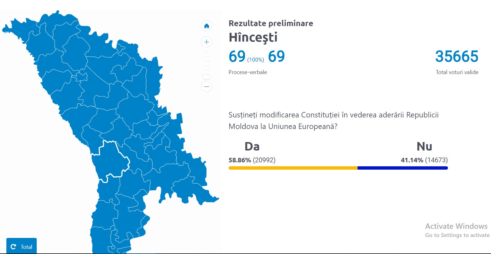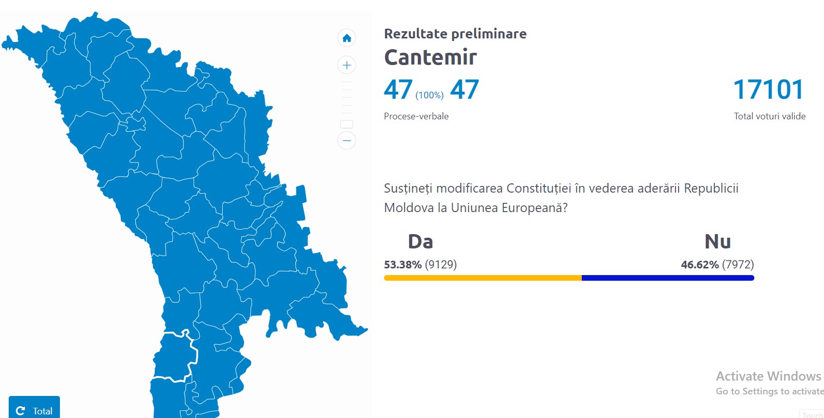 Doar în șapte raioane din țară și în municipiul Chișinău opțiunea „Da” la referendum a trecut pragul de 50%. Cel mai mare număr de alegători care au susținut modificarea Constituției în vederea aderării Republicii Moldova la Uniunea Europeană sunt din Ialoveni, atingând pragul de 67,7%.