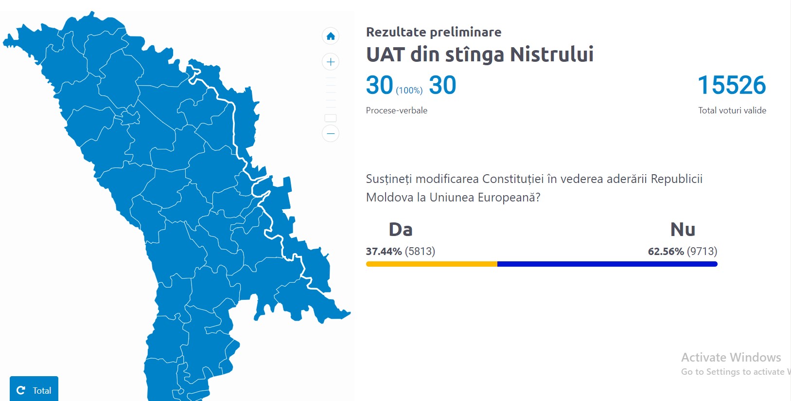 Doar în opt raione din țară opțiunea „Da” la referendum a trecut pragul de 50%: Locuitorii din Transnistria, mai „pro-europeni” ca unii din dreapta Nistrului