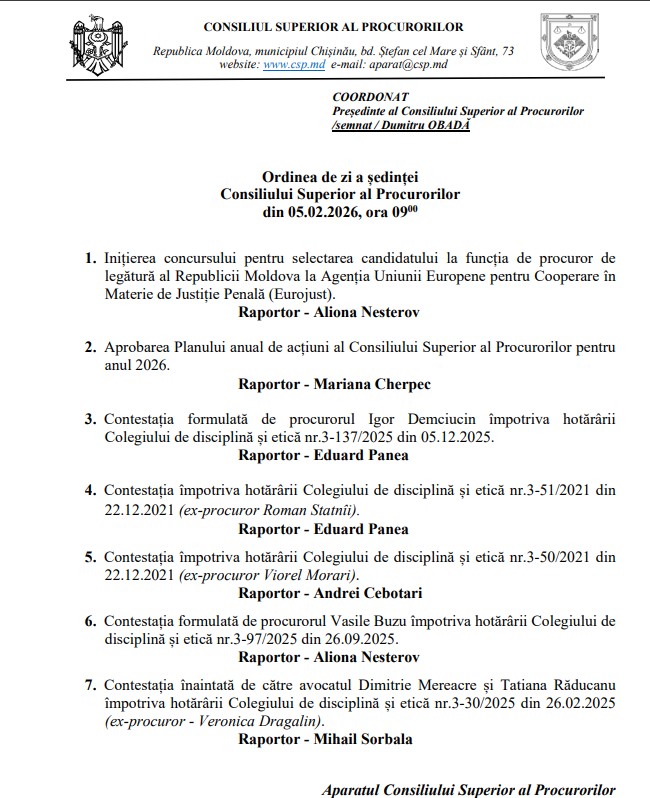update CSP examinează contestația formulată de procurorul Igor Demciucin împotriva hotărârii Colegiului de disciplină și etică nr.3-137/2025 din 05.12.2025.
