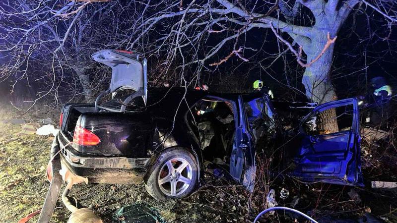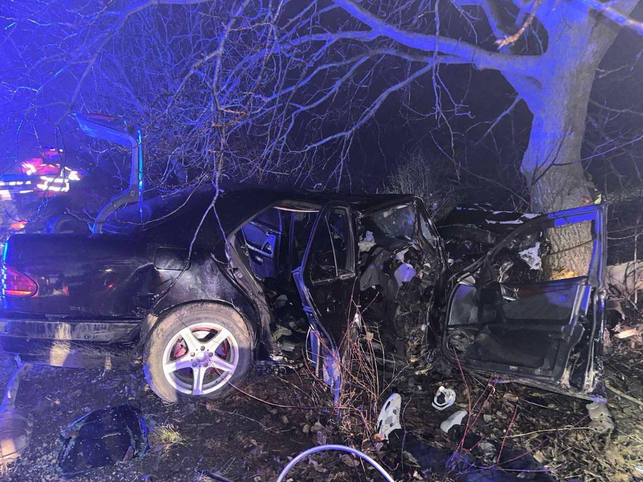 „Conform informațiilor preliminare, un Mercedes E-Class, condus de un bărbat de 28 de ani, fără permis de conducere, care avea trei pasageri, a pierdut controlul volanului din cauza vitezei excesive și s-a tamponat într-un copac.