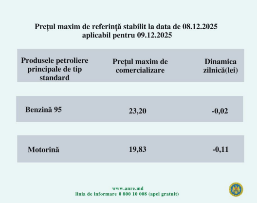 Prin urmare, litrul de benzină va costa 23,20 lei, iar cel la motorină - 19,83 lei.