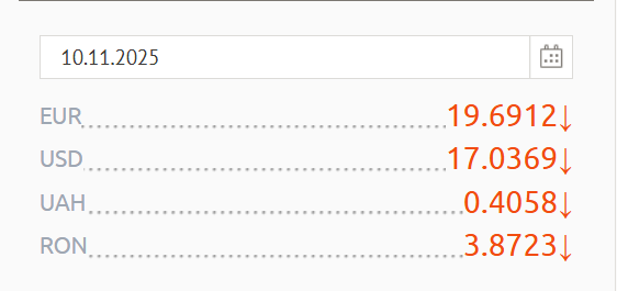 Leul românesc a rămas a fost stabil la o valoare de 3.8723 lei moldovenești, iar Hrivna ucraineană a scăzut ușor, ajungând la o valoare de 0.4058 lei moldovenești, comparativ cu 0.4067 lei în ziua anterioară.