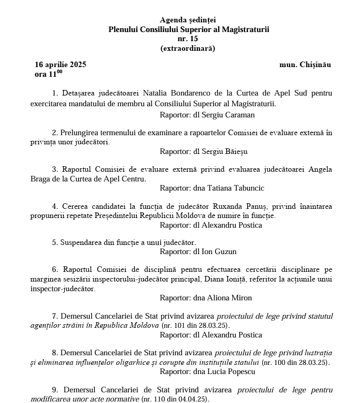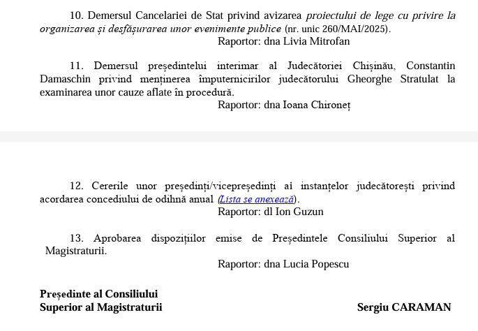 Ordinea de zi a ședinței CSM: