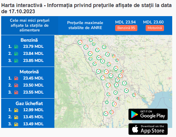 Astfel, 1 litru de banzină va costa pe 18 octombrie 23,83 de lei, iar cel de motorină - 23,56 lei.