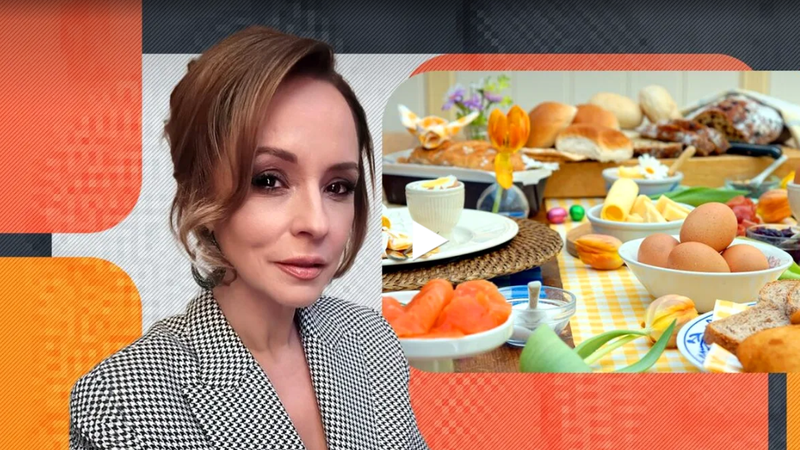 Andreea Marin: Respectăm tradițiile, de la bunătățile de primăvară – brânzeturi și toate legumele care au ieșit deja și sunt proaspete și cartofii noi, care îmi plac foarte mult, până la sărmăluțe, piftie, salate și tot ceea ce pune românul pe masa sărbătorii pascale și, bineînțeles, până la ciorbițele tradiționale și așa mai departe.