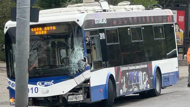 Un accident rutier s-a petrecut în această dimineață în centrul capitalei, unde un troleibuz s-a lovit cu un camion.