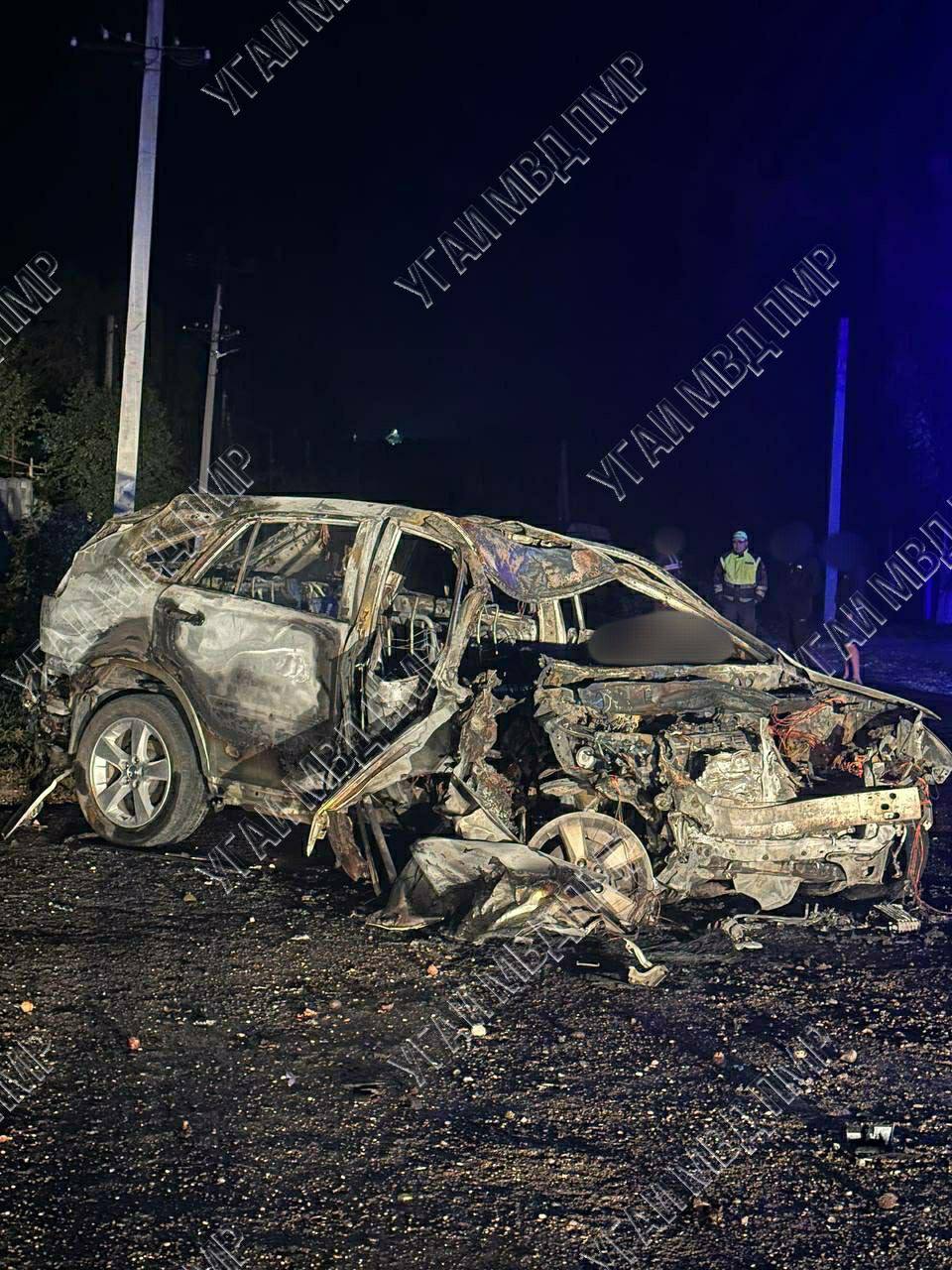 Potrivit responsabililor, mașina a derapat de pe traseu, s-a izbit de un copac, s-a proiectat într-un alt automobil parcat la marginea drumului, apoi a luat foc și a explodat.